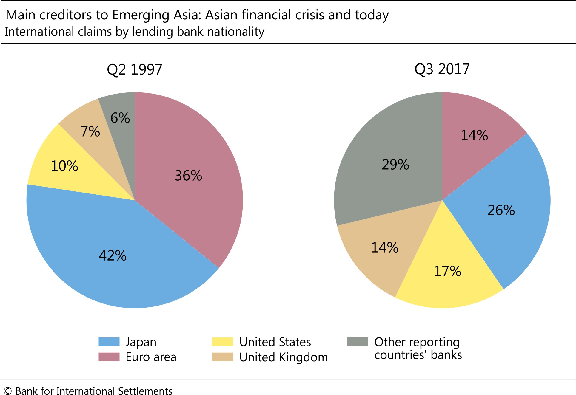 Shifting sources of international finance - from Japanese banks in the 1990s to European banks in the 2000s, with a growing role for Chinese banks today - have affected how economic shocks could be transmitted worldwide. |